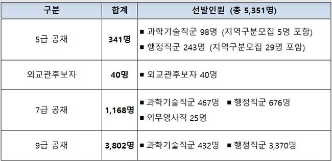 2026년 국가공무원 공채 5,351명 선발…9급 3,802명