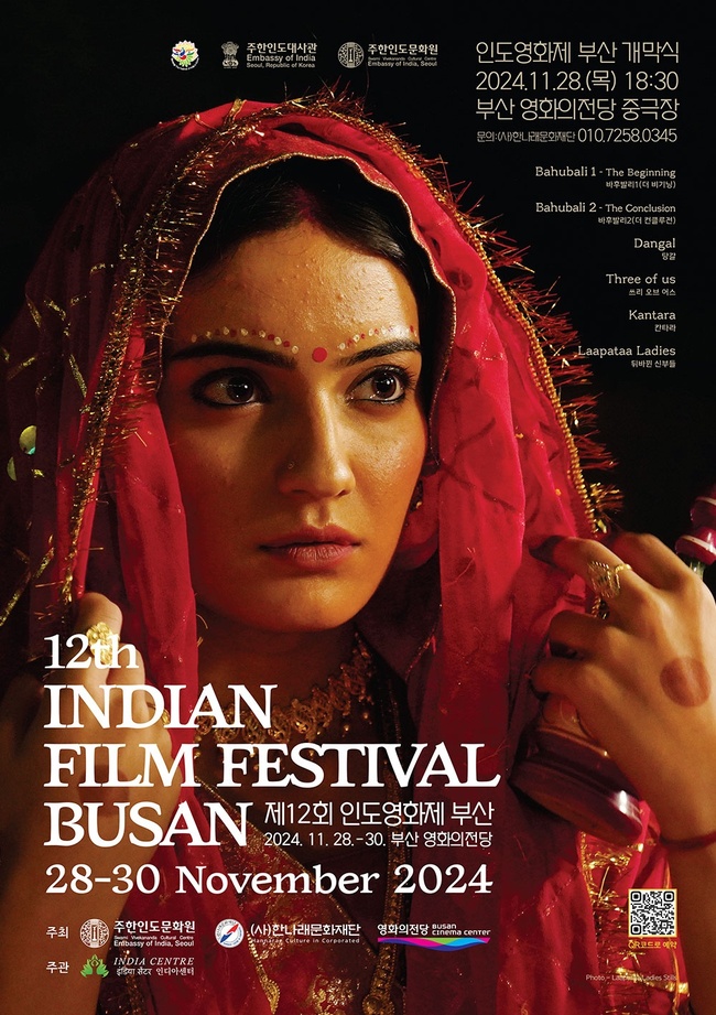 제12회 인도영화제 부산이 주한인도문화원, 사)한나래문화재단, 영화의전당이 주최하고, 인디아센터가 주관하여 2024.11.28~11.30.까지 부산 해운대구 영화의 전당에서 개최한다. 영화제의 개막작은 11.28. 오후 6시 30분 '뒤바뀐 신부들'이다.