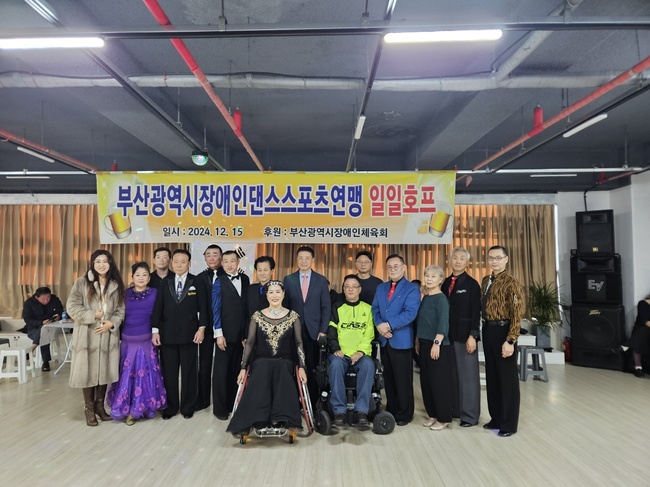 부산장애인댄스스포츠연맹(회장 구경서)이 연말을 맞아 회원들의 우의를 다지고 향후 발전을 도모하기 위하여 일일호프 행사를 가졌다. 12월 15일 오후 4시 시내 북구 화명동에 있는 구경서댄스스포츠교실에서 진행한 이날 행사에는 장애인단체와 댄스스포츠 동호인 등 200여 명이 참석했다.