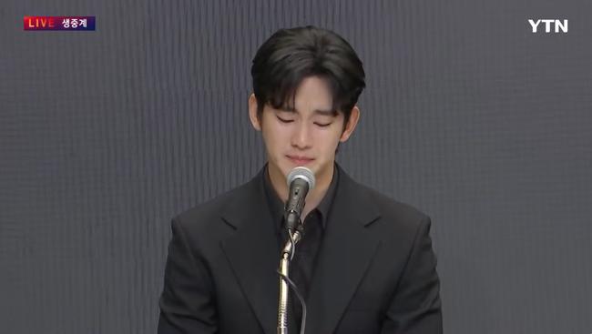 배우 김수현이 31일 서울 마포구 스탠포드 호텔에서 기자회견을 열고 고 김새론과의 교제 의혹 및 유족 측의 폭로에 대한 공식 입장을 밝히고 있다. (YTN 방송화면 캡처)