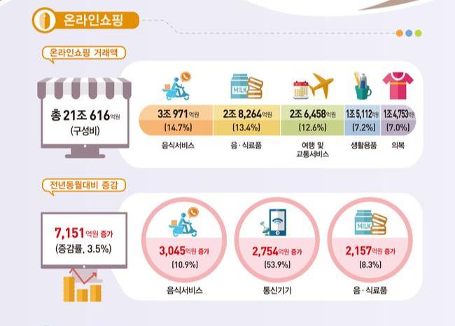 • 음식 서비스, 통신기기, 음·식료품 등 온라인 쇼핑 성장 견인
