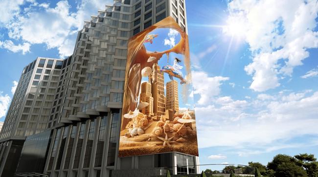 해운대해수욕장 입구에 자리한 그랜드조선부산이 호텔 벽면에 설치한 가로 25m, 세로 31m, 면적 788㎡의 디지털 광고판이다.
