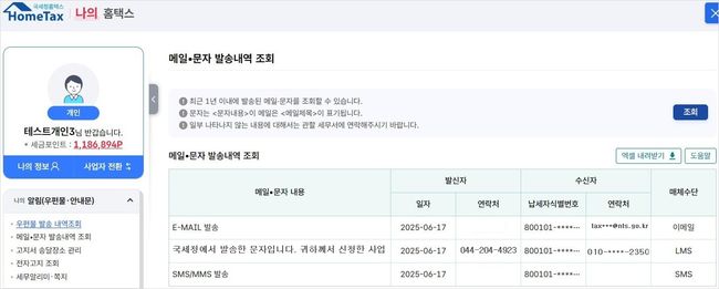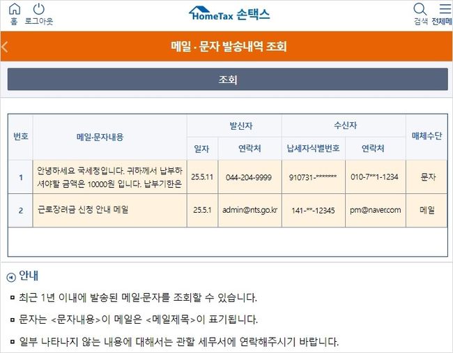 • 메일·문자 수신 시 홈택스 통해 발송 여부 직접 확인 가능