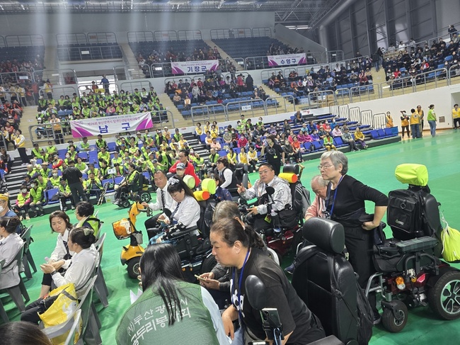 제45회 전국 장애인체육대회의 성공 기원을 위한 제26회 부산시 장애인생활체육 대축전이 10월 15일부터 19일까지 5일간 스포원 등에서 열린다. 이번 장애인생활체육 대축전에는 21개 종목에 선수, 임원, 자원봉사자 4,500여 명이 참가한다. 사진은 대회 첫날 개회식에 참석한 금정장애인자립생활센터에서 활약하고 있는 슐런 선수들이다.
